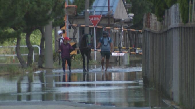 線状降水帯による雨で金沢競馬は浸水被害に遭い、翔馬さんたちも厩舎の掃除や泥出しに追われました。