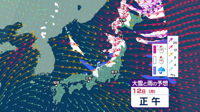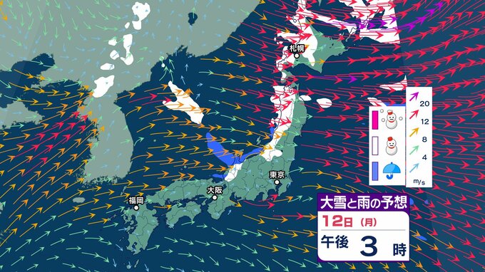 【大雪情報】ピークは過ぎつつあるものの、北日本・東日本で12日は暴風雪や高波続く 視界が効かなくなる「猛ふぶき」のおそれ 大雪による交通障害にも注意【気象庁 雪風シミュレーション/12日午前9時更新】 RSK山陽放送 2026年1月12日(月) 09:25 国内 天気 12日(月)3時間ごとの雪風シミュレーション