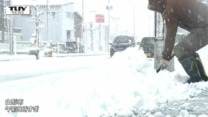山形市はきのう夕方から雪が強まりました。きのうまで積雪のなかった山形市は午前9時現在で14センチの積雪となりました。