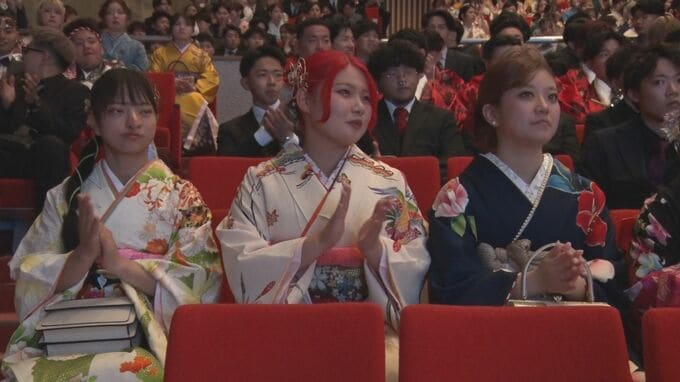 「来年から自分はもう就職になるので、社会人としての自覚をしっかり持ってがんばっていきたいと思います」「教員目指しているんですけど、生徒に誇っていける自分を目指して、頑張っていきたいなと思います」「親に感謝というか、ありがとうと言いたいです」