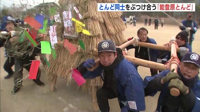 とんど同士をぶつけあう「能登原とんど」が11日、福山市で行われました。