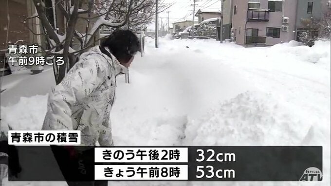 青森県内は、津軽と上北を中心に雪が強まり、青森市では1日で20cm以上積雪が増えました。強い冬型の気圧配置の影響で、県内は津軽と上北を中心にまとまった雪が降りました。11日午後2時に積雪が32cmだった青森市は…