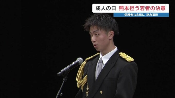 また、新しく成人になった参加者を代表して、熊本市消防局で働く桂右京さんが節目に立った思いを言葉にしました。