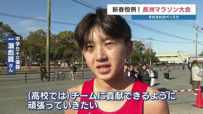 中学5㎞優勝 一瀬彪眞さん「先頭に食らいつく気持ちで走って、結果的に優勝できてよかったです。今春から高校生になってチームに貢献できるように頑張っていきたい」