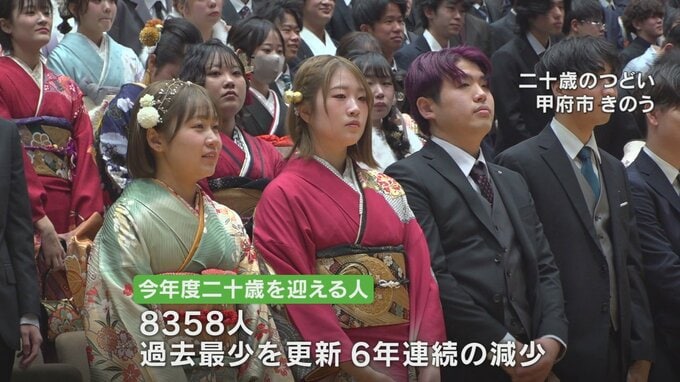 山梨県内で今年度二十歳を迎え成人の日の祝賀行事の対象になる人は8358人で過去最少を更新し、6年連続で減少しました。