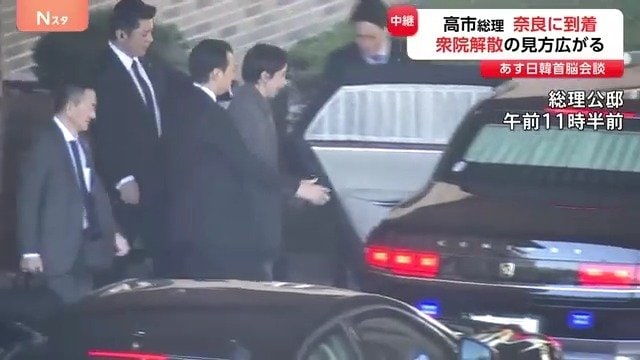 高市総理は、あすの日韓首脳会談にむけ、さきほど奈良に到着しました。一方で、来週23日召集予定の通常国会冒頭で衆議院を解散するとの見方が広がっています。現場から中継です。