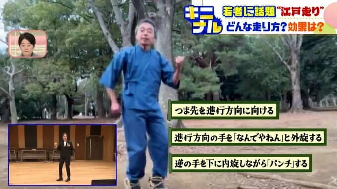 大場さんは、国会図書館で様々な文献を見て研究し、独自に考案した結果「江戸走り」になったということです。その『江戸走り』に金城アナも挑戦することに!