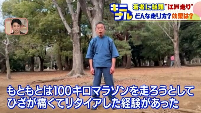 「もともとは100キロマラソンを走ろうとして、膝が痛くてリタイヤした経験がありまして、古武術などの本で江戸時代の人は1日100キロ走っていたというのを知り、走り方を知りたい、そうなりたいと思ったのが研究の始まり」
