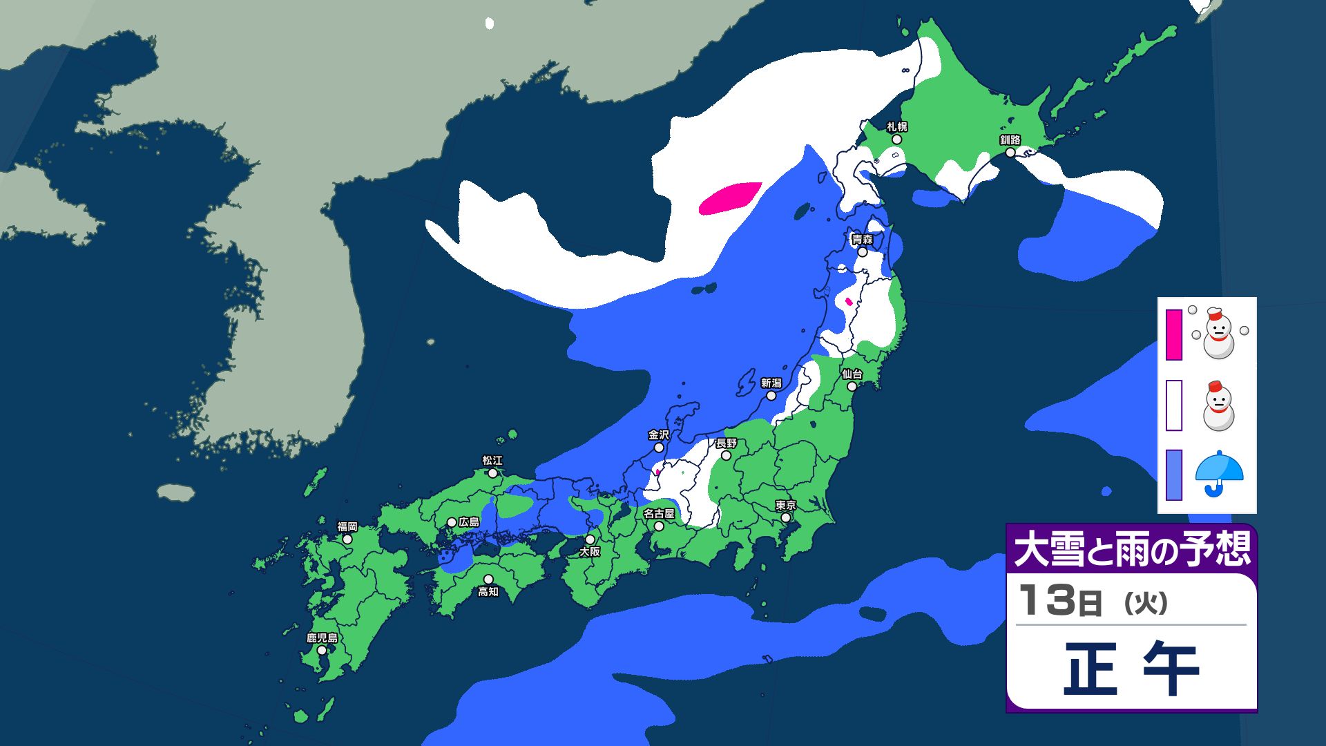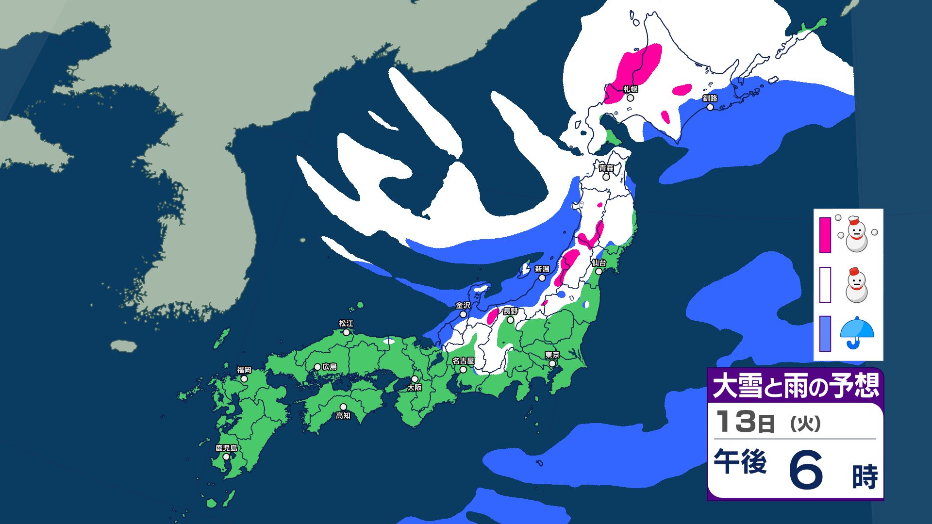 大雪から「再び冬型」の気圧配置 13日~14日は北日本と東日本で大雪注意…3連休明けの天気は?【雪と雨のシミュレーション掲載 1月17日まで】 信越放送 2026年1月12日(月) 16:55 国内 【雪と雨のシミュレーション掲載 1月12日~17日】