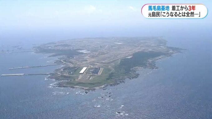 自衛隊基地の整備と、アメリカ軍空母艦載機の訓練が計画される馬毛島。基地整備の関連費は、契約ベースで総額1兆4000億円を超えます。2030年3月の完成に向けて、6000人の工事関係者が日夜、工事を進めています。