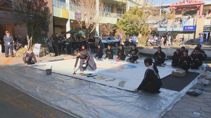 このイベントは、110番の日に合わせて県警が毎年開催しています。12日は大分高校書道部の生徒が参加し、相談専用ダイヤルと緊急通報の使い分けなど、110番の適正利用を呼びかける書道パフォーマンスを披露しました。