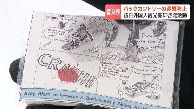 一方で、バックカントリーによる遭難も後を絶たず道警は、「発信機の携帯」などの注意書きを英語で説明し安全な滑走のためのルールを呼びかけました。