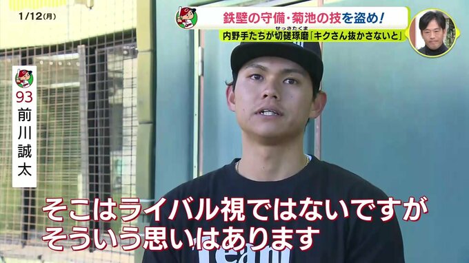 前川選手は「キクさんを抜かさないとレギュラーにはなれないので。そこはライバル視じゃないですけど、そういう思いはあります」とスタメン奪取を意気込みました。