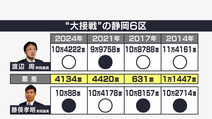 毎回、激戦が繰り広げられる静岡6区。常に僅差の決着のため選挙のタイミングや支持率など世論の動向は重要なファクターとなります。