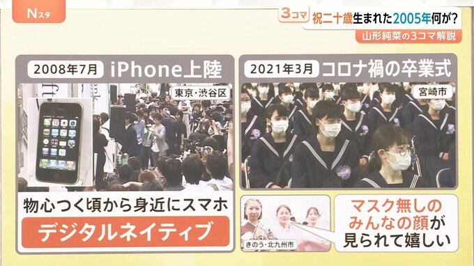 中学校卒業時は(2021年3月)、コロナ禍の卒業式となりました。11日に北九州市の式典に参加した方は「マスク無しのみんなの顔が見られて嬉しい」と話していました。
