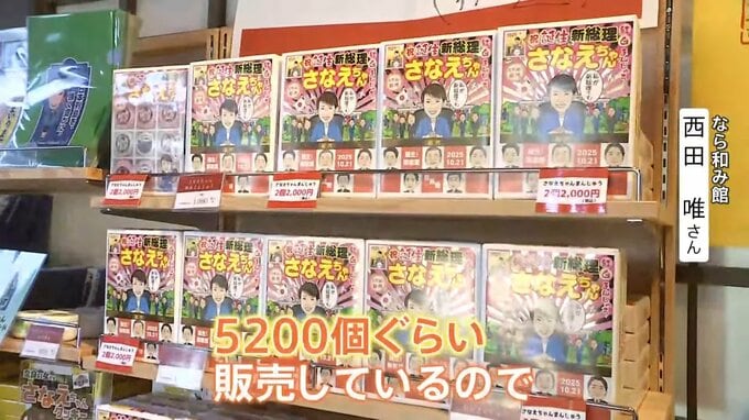 高い支持率の影響は、奈良の土産物店でも。目立つ場所に、総理のイラスト入りの「まんじゅう」や「アクリルスタンド」など、関連グッズがズラリと並びます。