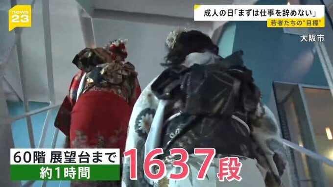大阪市の「あべのハルカス」では、ハタチを迎える若者たちが“大人の階段”を登りました。60階の展望台までおよそ1時間、1637段を登った若者が誓ったのは…。