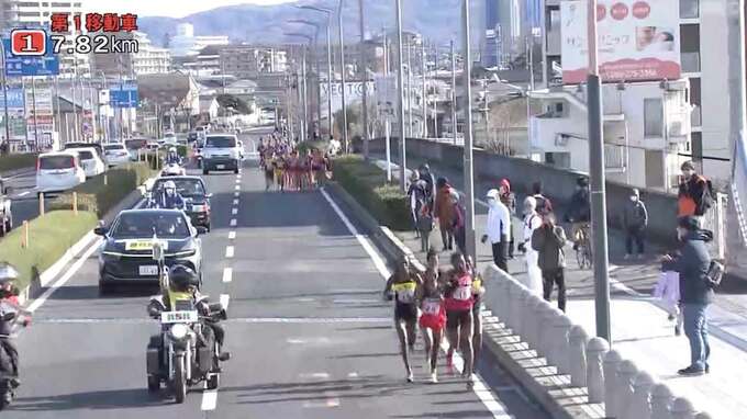 一方、国内勢のトップ争いは九電工の唐沢が16キロ付近で後続を突き放し前を追います。