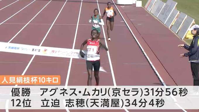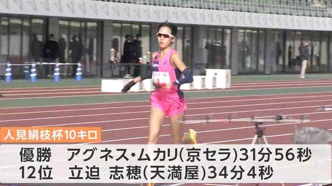 また人見絹枝杯10キロは京セラのアグネス・ムカリが3連覇を達成。天満屋のルーキー・立迫は12位でした。