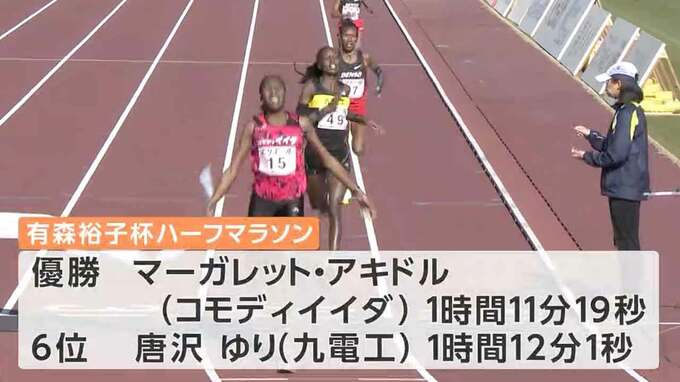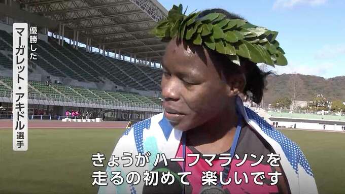 【優勝したマーガレット・アキドル選手】「きょうがハーフマラソンを走るの初めて楽しいです。来年はベストタイムを更新したい」