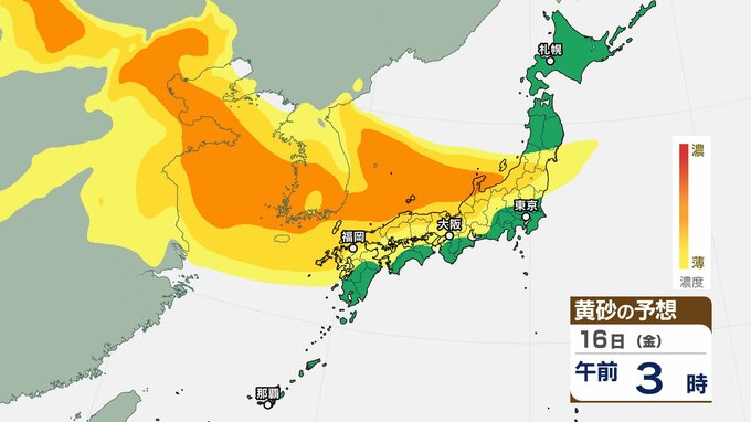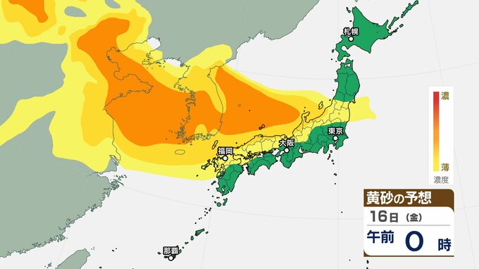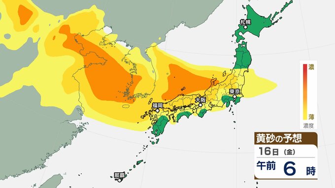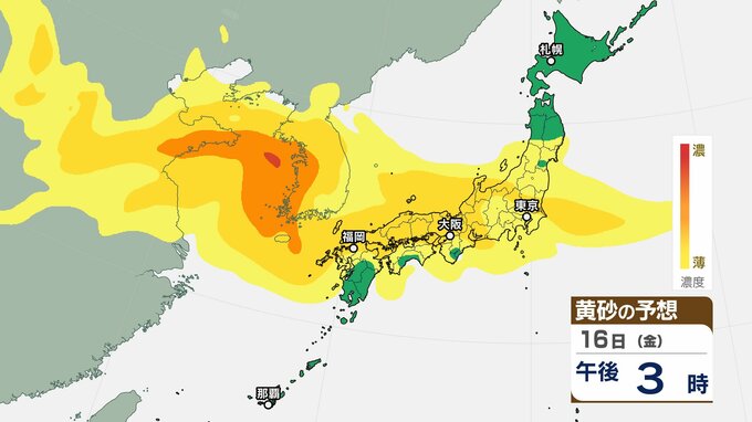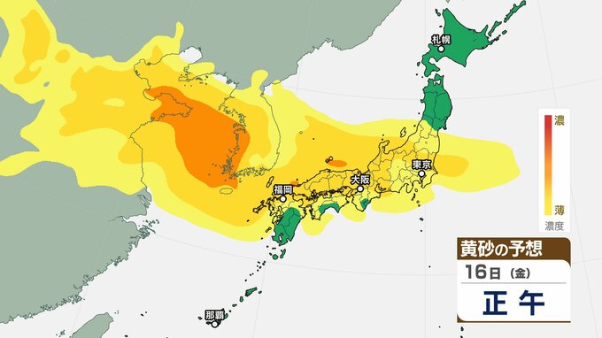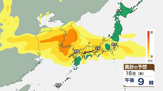 16日(金)は【画像㉔~】の通りです。東日本から西日本の広い範囲に飛来する可能性があります。