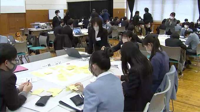 岡山県内の23の中学校・高校から132人が参加し、SDGsの17の目標について自分たちが今できることなどを話し合いました。