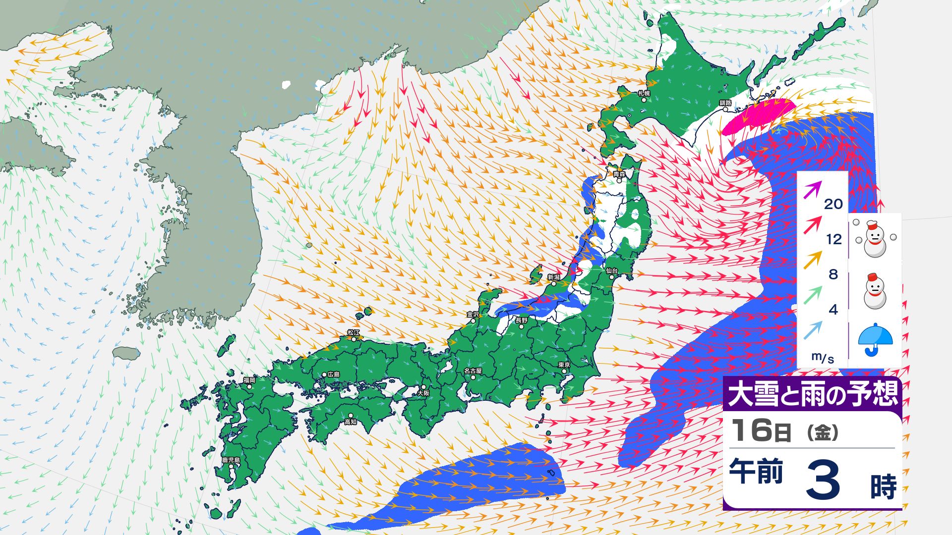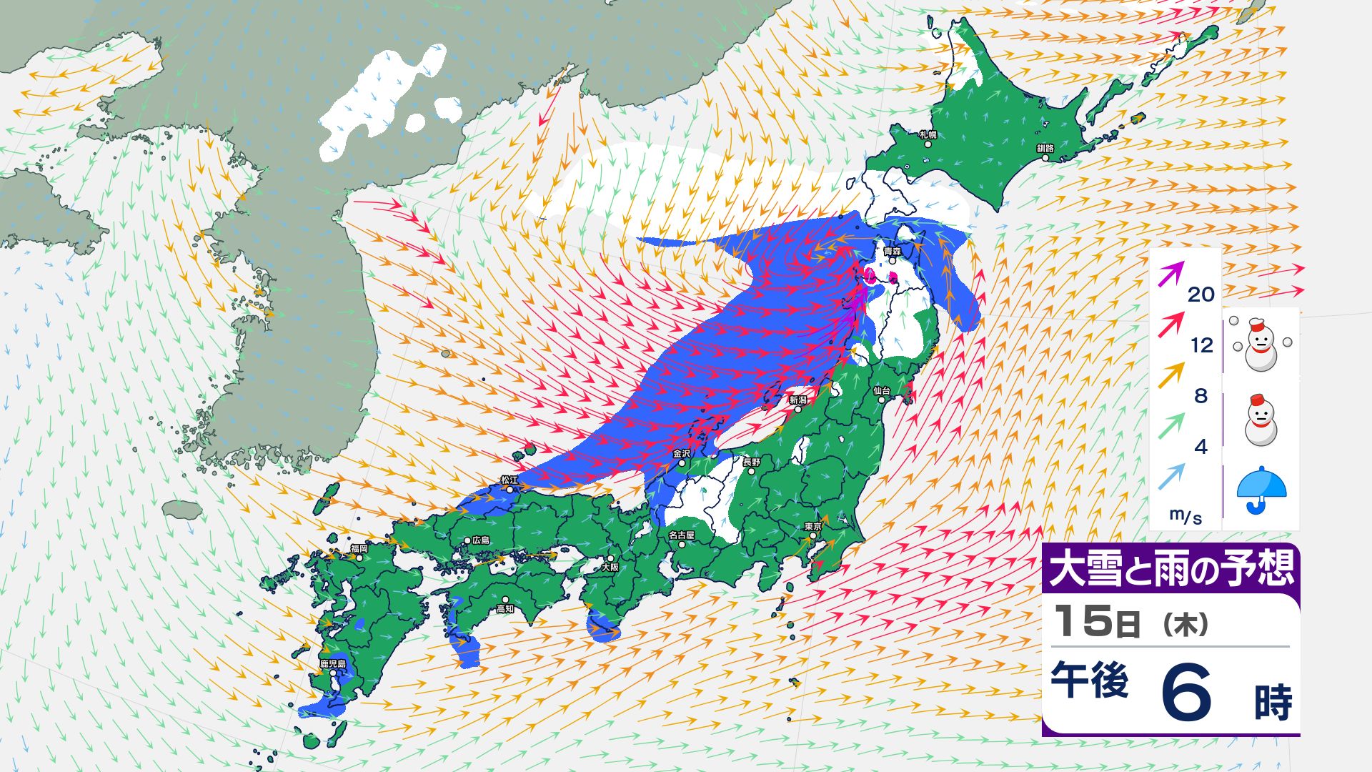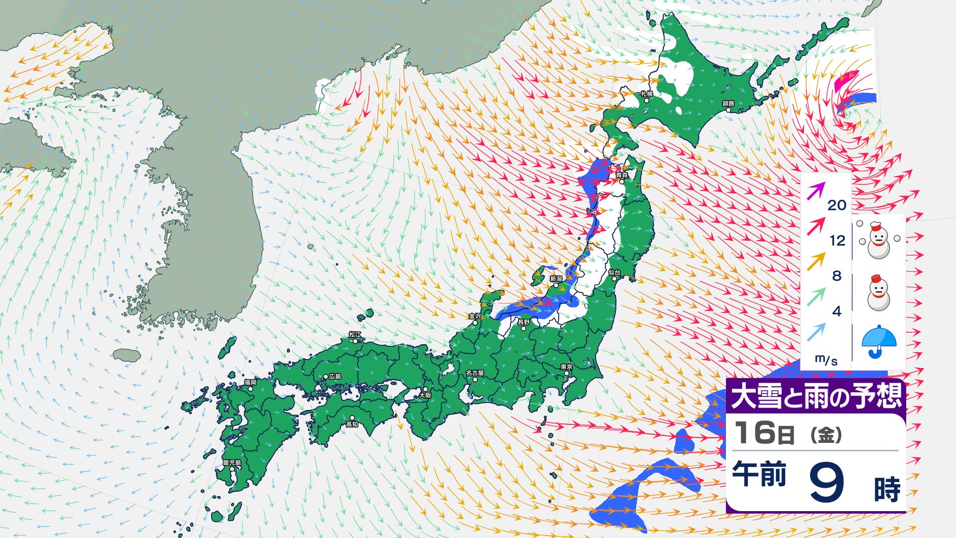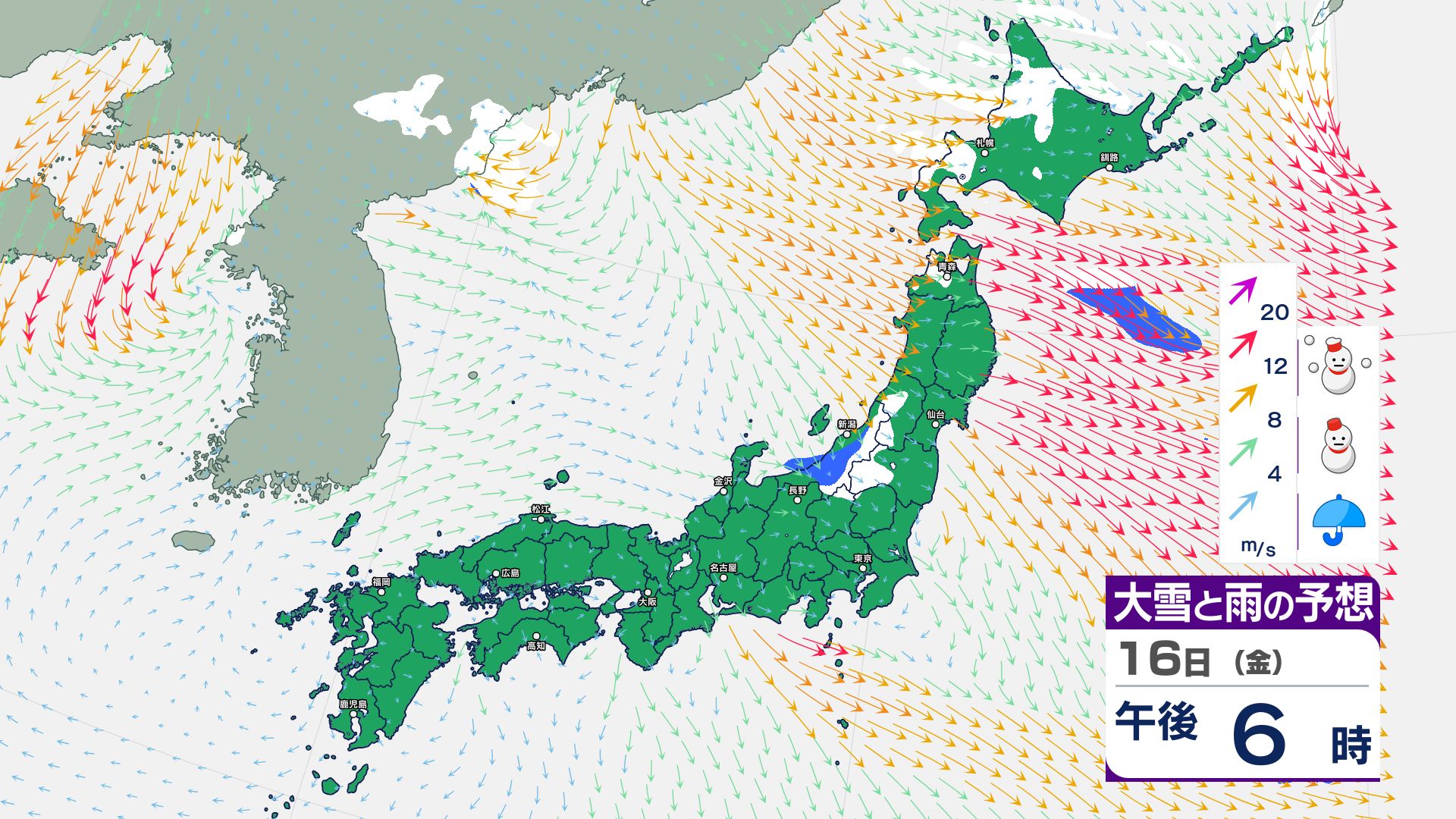 寒冷前線が通過…北日本~東日本の日本海側は14日にかけて暴風雪などに警戒必要【雪と雨・風のシミュレーション掲載 1月17日まで】