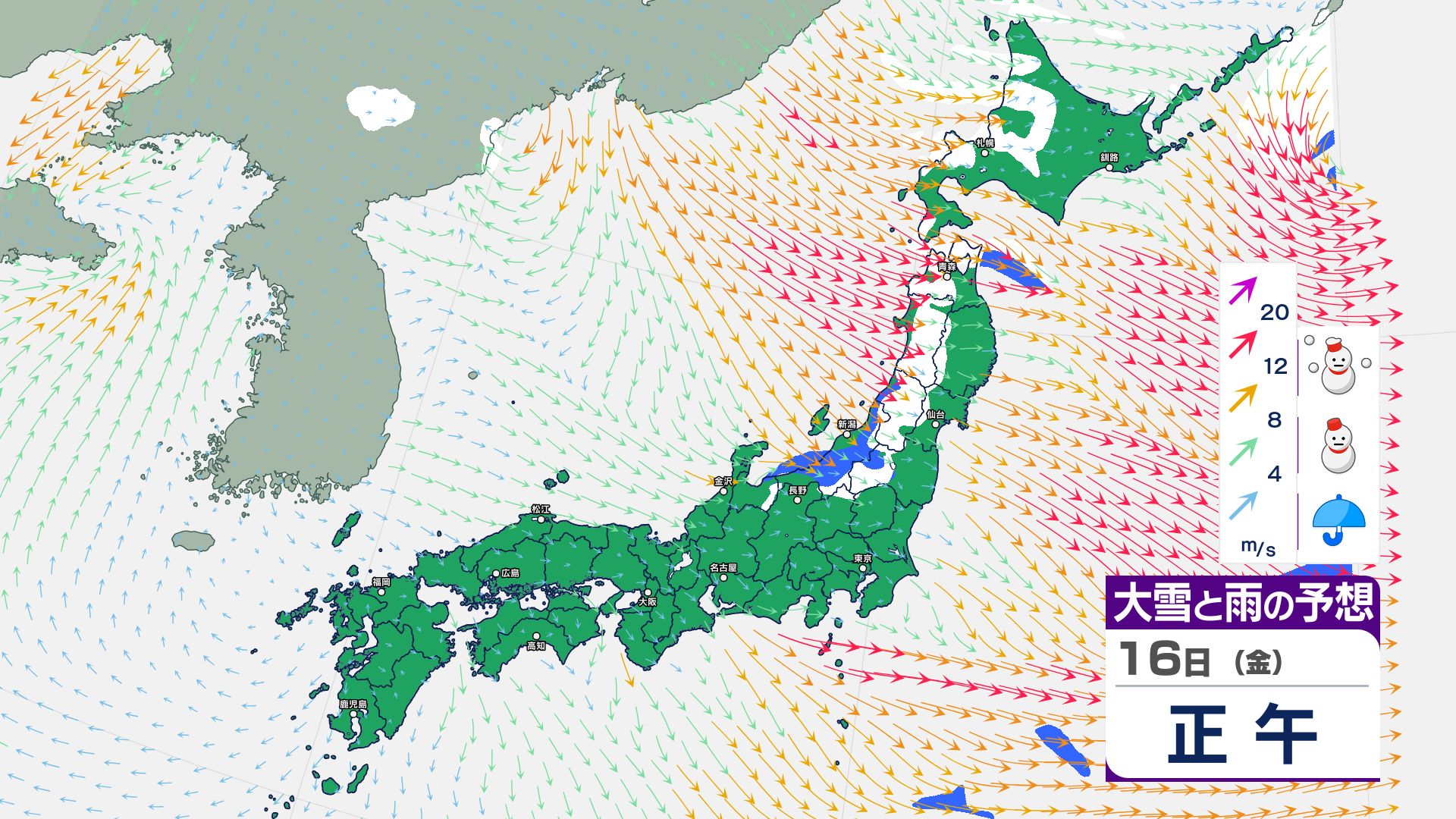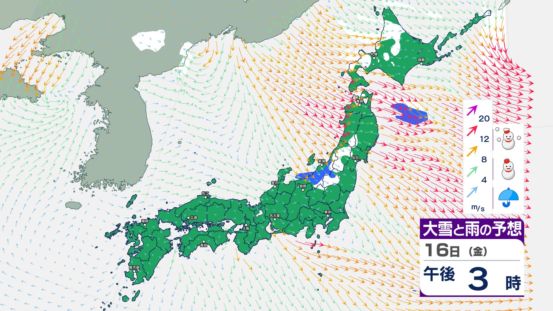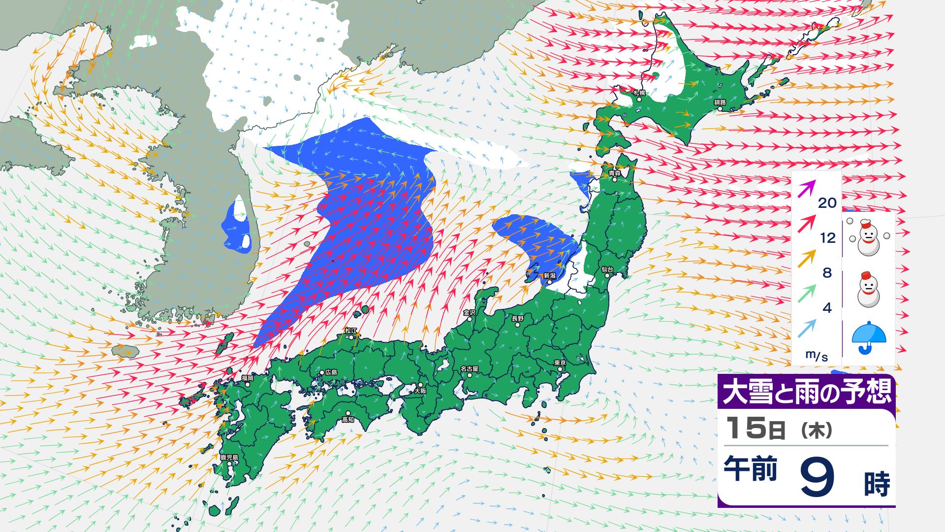 寒冷前線が通過…北日本~東日本の日本海側は14日にかけて暴風雪などに警戒必要【雪と雨・風のシミュレーション掲載 1月17日まで】