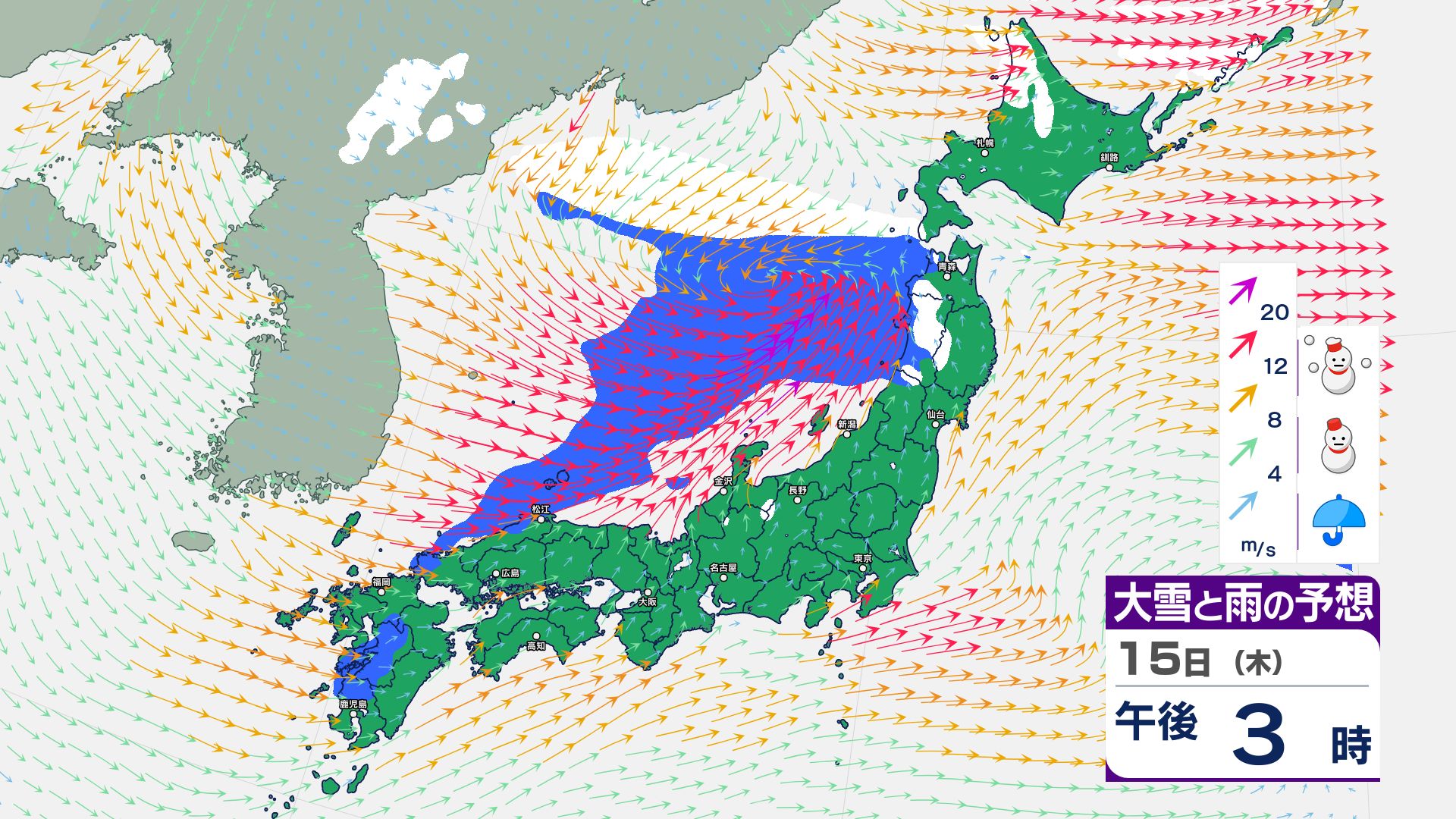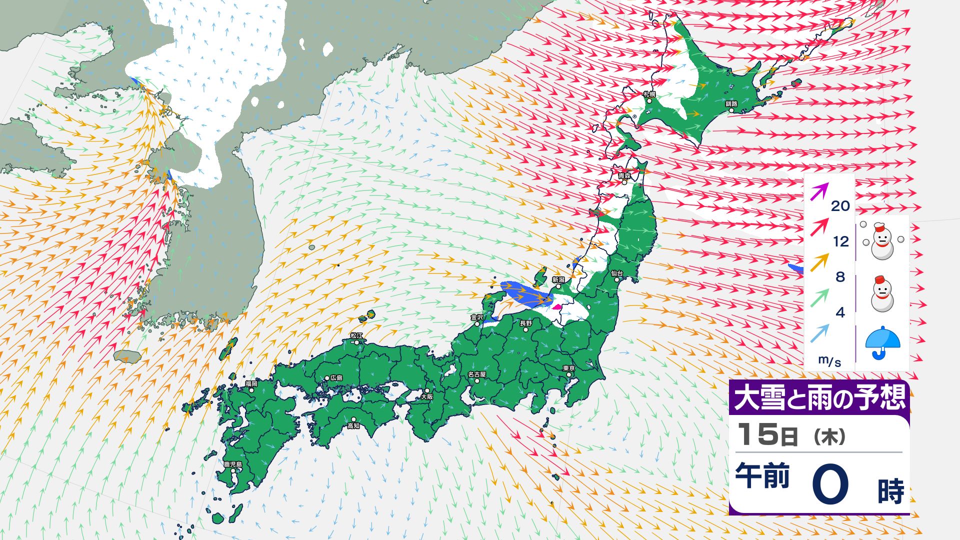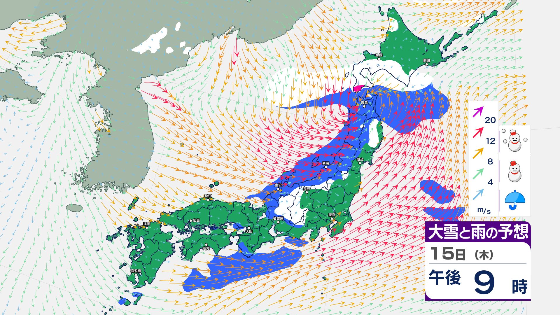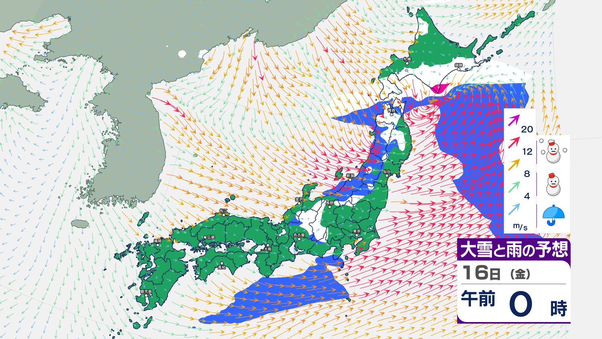 寒冷前線が通過…北日本~東日本の日本海側は14日にかけて暴風雪などに警戒必要【雪と雨・風のシミュレーション掲載 1月17日まで】
