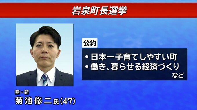 菊池氏は日本一子育てしやすい町や働き・暮らせる経済づくりなどをそれぞれ公約に掲げています。