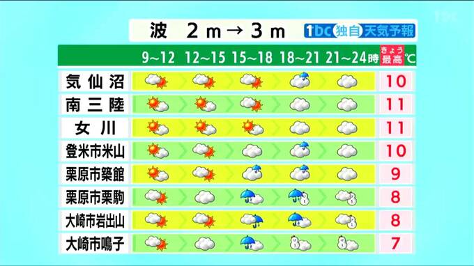 ■女川:最高気温11℃ ■登米市米山:最高気温10℃