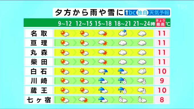 ■白石:最高気温10℃ ■川崎:最高気温9℃