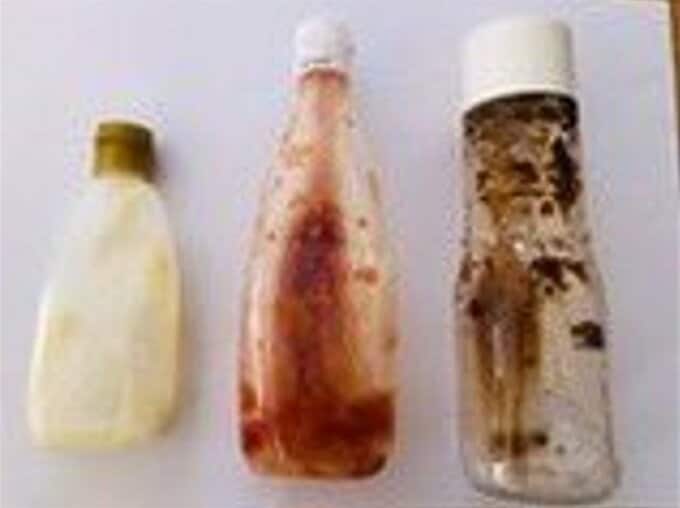 滝沢さんは、ケチャップやソースなどの空になった食品用プラスチック容器の画像を添えて、「このように汚れが付いているものは、洗うのも大変なので、プラスチック資源ではなく、可燃ごみで大丈夫です」と説明。