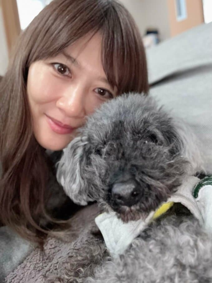 また、実家では、15歳になった愛犬ハルくんとも再会。「お正月をちょっとすぎたけど、実家へお正月帰省」と報告し、ハルくんとの写真とともに「13年前と比べて私もハルくんも歳を取ったなぁ、と(笑)」と、振り返りました。