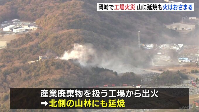 愛知県岡崎市の産業廃棄物を扱う工場で火事があり、近くの山林にも燃え広がりました。報告「午前0時です。のり面に火の帯が伝わっているのが見えます」警察と消防によりますと、きのう午後10時半すぎ、岡崎市才栗…