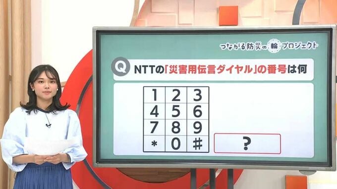 災害時に家族や友人への伝言を録音できるNTTの「災害用伝言ダイヤル」の番号は何番でしょうか?