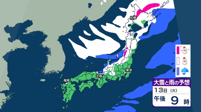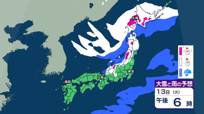 気象庁によると、急速に発達する低気圧の影響で、北日本から東日本の日本海側を中心に、14日にかけて大荒れの天気となる見込みです。
