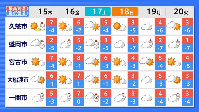 【雪情報】17日(土)また寒気 週後半は再び天気崩れる 北日本・東日本はあすにかけて大荒れ警戒【雪・雨シミュレーション14日(水)~18日(日)】47都道府県の週間天気予報 南日本放送 2026年1月13日(火) 12:24 国内 全国47都道府県の週間天気予報を画像で掲載しています