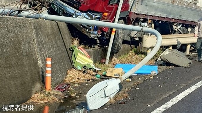 【速報】国道11号で大型トラックが道路脇の建物に衝突 1人を救急搬送 激しく折れ曲がった道路標識【香川 / 視聴者提供画像】 RSK山陽放送 2026年1月13日(火) 13:48 国内 【画像】激しく折れ曲がった道路標識 【画像③】
