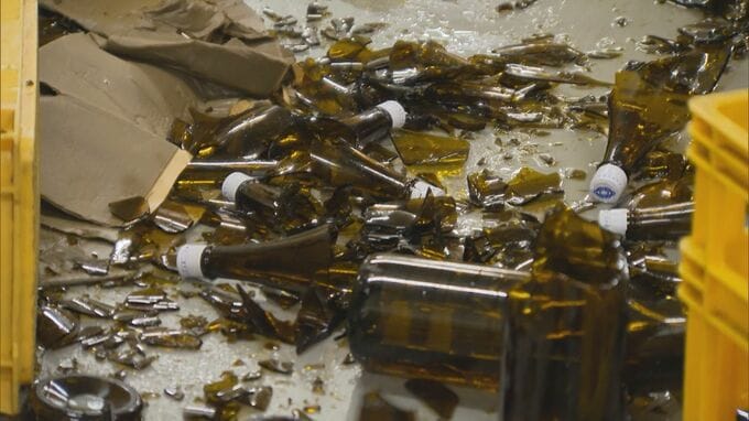 地震の翌日に取材したときは、保管していた酒瓶が倒れ、こぼれた日本酒や割れた瓶が床一面に散らばり、無残な姿に。悔しい片付けが進められていました。