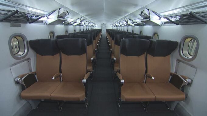 最新型の車両の座席の背もたれは、後ろに約15度傾き、リクライニング機能がない固定式。JR東海は短い乗車時間になるので固定式でも快適に乗ってもらえるのでは?と話します。
