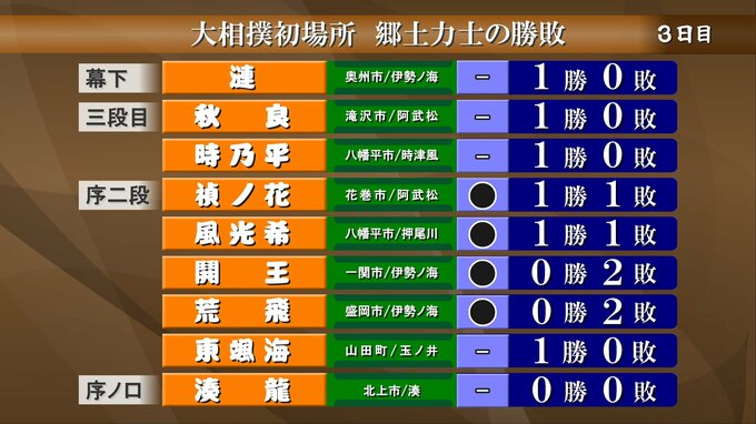 序二段の禎ノ花と風光希は敗れて1勝1敗。