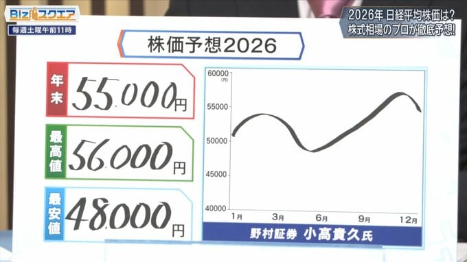 2026予想▼年末:5万5000円▼最高値:5万6000円▼最安値:4万8000円