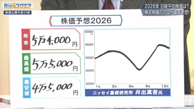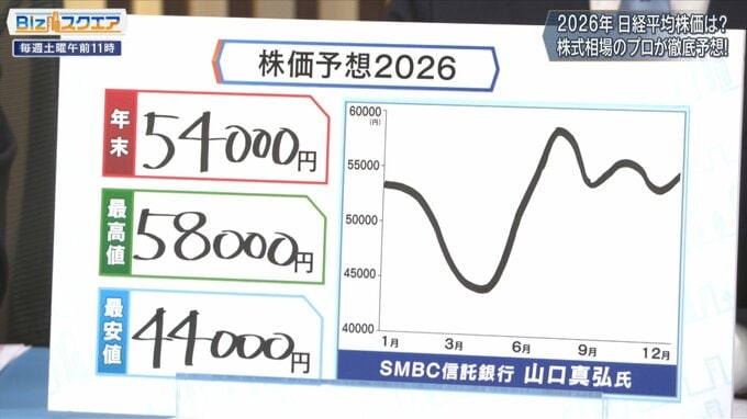 「やはりAIの振幅があるだろうと思う。期待先行と現実を見に行くという局面が出てくると思うので、4万4000円ぐらいまで下押しするリスクはあるかと。上は5万8000円で見ていて、年後半にかけてちょっと伸び悩むイメージ」