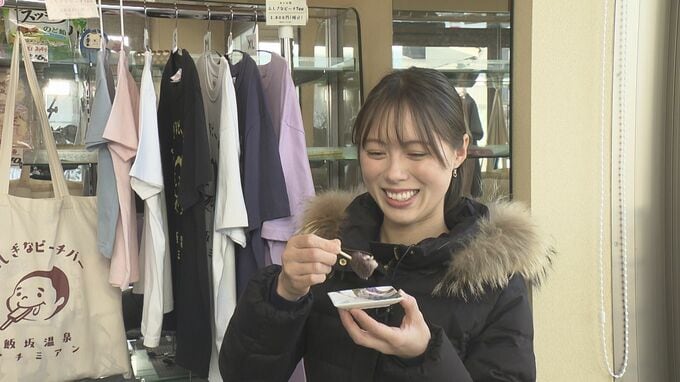 佐藤玲奈アナウンサー「あずきの粒を噛めば噛むほど優しい甘みが口の中に広がっていって、食感もいいですよね。これは三浦選手に必ず届いてほしいな」