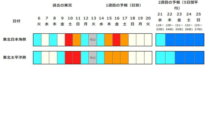 ※平年の5日間降雪量:青森:31cm / 酸ケ湯:73cm / 秋田:17cm / 横手:44cm / 湯田:51cm / 只見:62cm