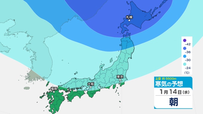 【10年に1度レベルの低温・大雪】日本全国が真っ青…20日以降、全国各地が『かなりの低温』253%以上の大雪のところも 北海道、東北、関東甲信、北陸、東海、近畿、中国、四国、九州、沖縄【気象庁・早期天候情報】 あいテレビ 2026年1月13日(火) 17:13 国内