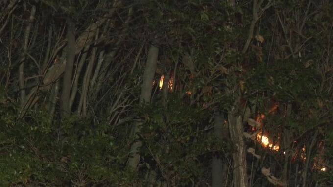 山林にも火の手が…愛知・岡崎市の工場火災 約7時間後にほぼ消し止められる 鉄骨3階建ての工場と事務所が全焼