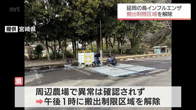 今月、延岡市の養鶏場で発生した高病原性鳥インフルエンザについて、宮崎県は、発生農場の周辺に設定していた搬出制限区域を解除しました。今月1日、延岡市の養鶏場で高病原性鳥インフルエンザが発生したことを受…