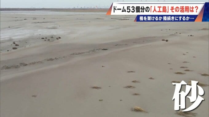 頂上から見えたのは、見渡す限りの砂地。ここには、5000万立方メートルもの土砂が埋め立てられています。
